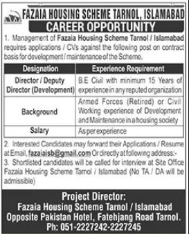 Fazaia Housing Scheme Tarnol Jobs In Islamabad October 2025 Advertisement